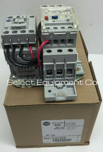 509-TOD-A2E , Allen Bradley Nema Size 00 motor starter series 1, full voltage non-reversing, 3 phase 600V, 120V coil, 9 Amp max, 592-EECT overload relay with 1A-5A overload setting.